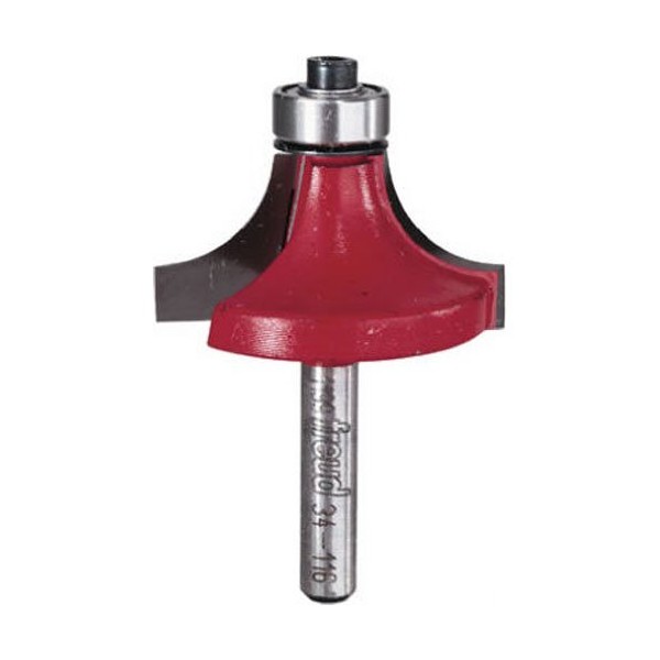 Freud's precision ground carbide bits have a grain size smaller than other grades, and titanium is added making them impervious to chemical attack. Promoting safer woodworking is the reason Freud made a commitment to develop anti-kickback router bits. Bits are computer balanced to insure vibration-free operation at speeds that are a safe margin above the typical 22,000 RPMs of most routers. Freud's philosophy is woodworkers should expect safety, not pay for it. Over-all diameter 1-1/2-inch, large radius 1/2-inch, shank diameter 1/4-inch.
