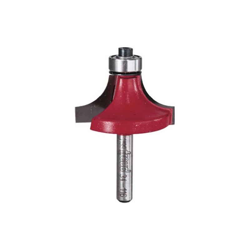 Freud 1/2" Radius Rounding Over Bit, 1/4" Shank (Quadra-Cut) (34-116) Perma-SHIELD Coating Red