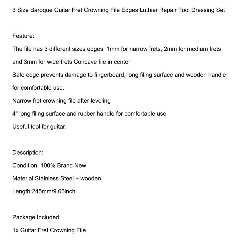 • Material:Stainless Steel + wooden,Length:245mm/9.65inch,Useful tool for guitar.