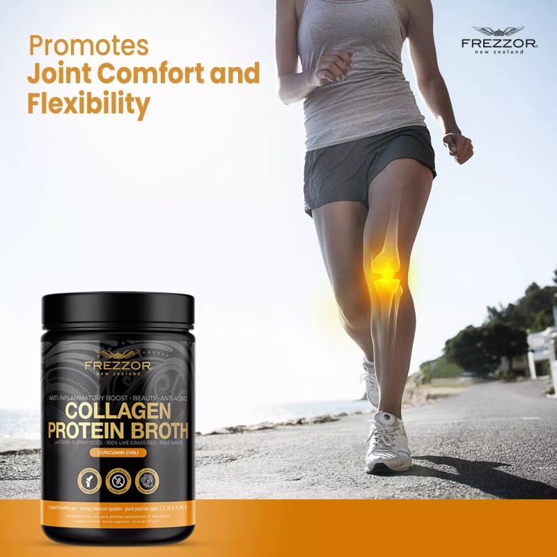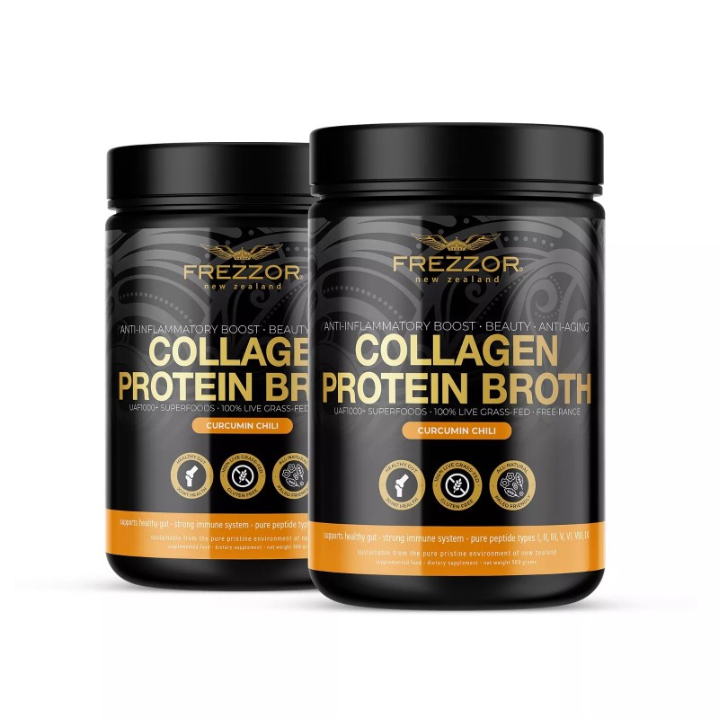 - FREZZOR 100% Live Grass-Fed Beef Bone Broth Collagen & Protein is Pure Quality. Wild-crafted, and all-natural Frezzor New Zealand collagen transforms the body by rejuvenating its connective and structural tissues. Gourmet inspired flavors include 5 flavors: Pure, Lemon Ginger, Seasonal Herbs, Lavender Chamomile, Curcumin Chili. Our FREZZOR Bone Broth includes over 50 Powerful Superfoods!