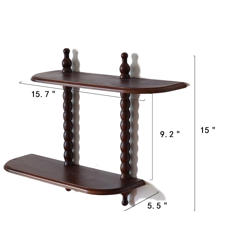 FRIADE 2-Tier Wall Mounted Floating Shelf with Two Roman Column,Decorative Display Shelf for Entrance,Bathroom, Bedroom, Living Room, Kitchen,Office (Dark Brown)