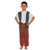 - Costume includes: trousers with attached belt and waistcoat. T-shirt not included. Keep away from fire.