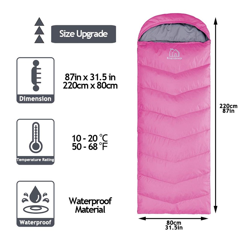 Friendriver XL Size Widened Upgraded Version of Camping Sleeping Bag 4 Seasons Warm and Cool, Lighter Weight, Adults and Children Can Use Waterproof Camping Bag, Travel and Outdoor Activities(Pink)