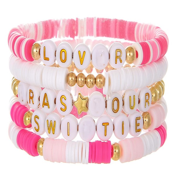 Friendship Bracelet, 5Pcs Album Beaded Bracelets for Fans Gift Music Lover Girl Women Sister Tour Birthday Gifts Party Decoration (Pink)