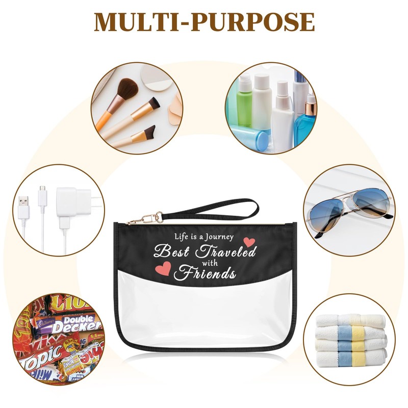 Friendship Gift for Best Friends Travel Makeup Bag Sisterhood Gift Girl Trip Girls Weekend Gift Clear Cosmetic Bags Wedding Graduation Birthday Gift for Friends Bestie Sister Zipper Toiletry Pouch