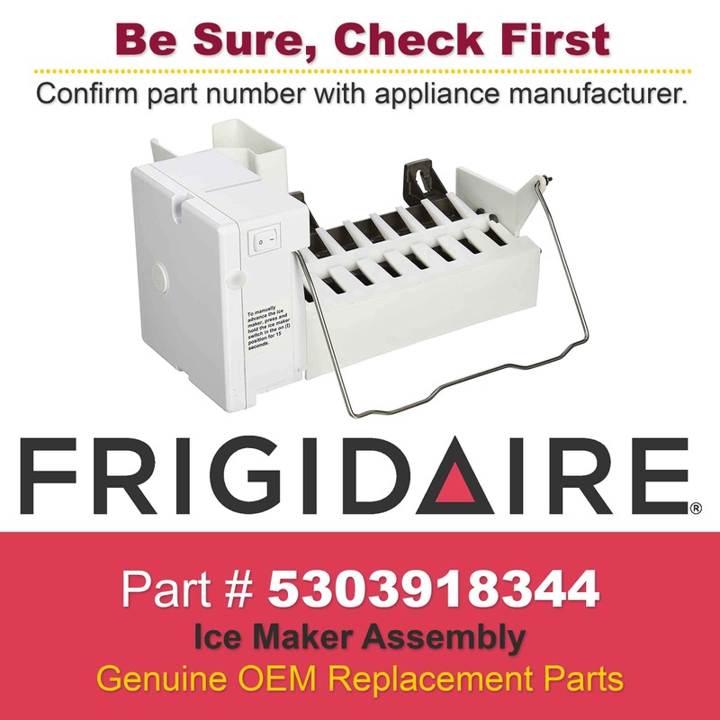 Frigidaire 5303918344 Icemaker Kit for Refrigerator. This part works with the following models: Frigidaire E23CS75DSS8, Frigidaire EI23CS55GB4, Frigidaire EI23CS55GS4, Frigidaire EI23CS55GW4, Frigidaire EI26SS55GB3, Frigidaire EI26SS55GB4. Genuine Replacement Part.