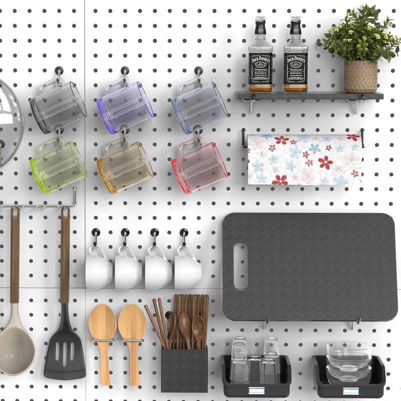 - Specification - Suitable for all 1/8 and 1/4 inch metal, wooden pegboards with 1 inch spaced holes.