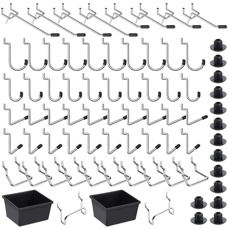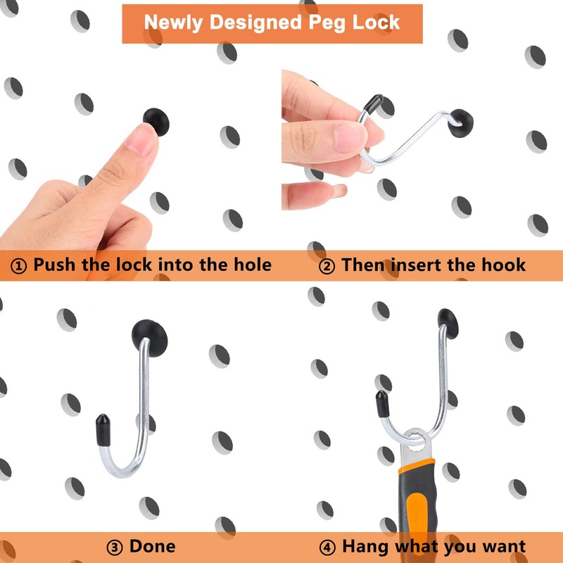 - Value Pack - Come with 9 different types of pegboard hooks, like pegboard bins, plier holders, J hooks, 110 pieces in total, 50 of which are locks.