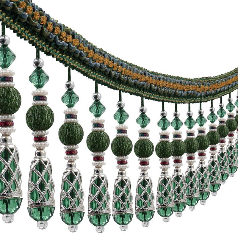 Fringe Trim Beaded Tassel Curtain Fringe Trim Decorative Curtain Tassels Lampshades Boho Trim Embellished Sewing Upholstery Curtains 9 Yards (Green)