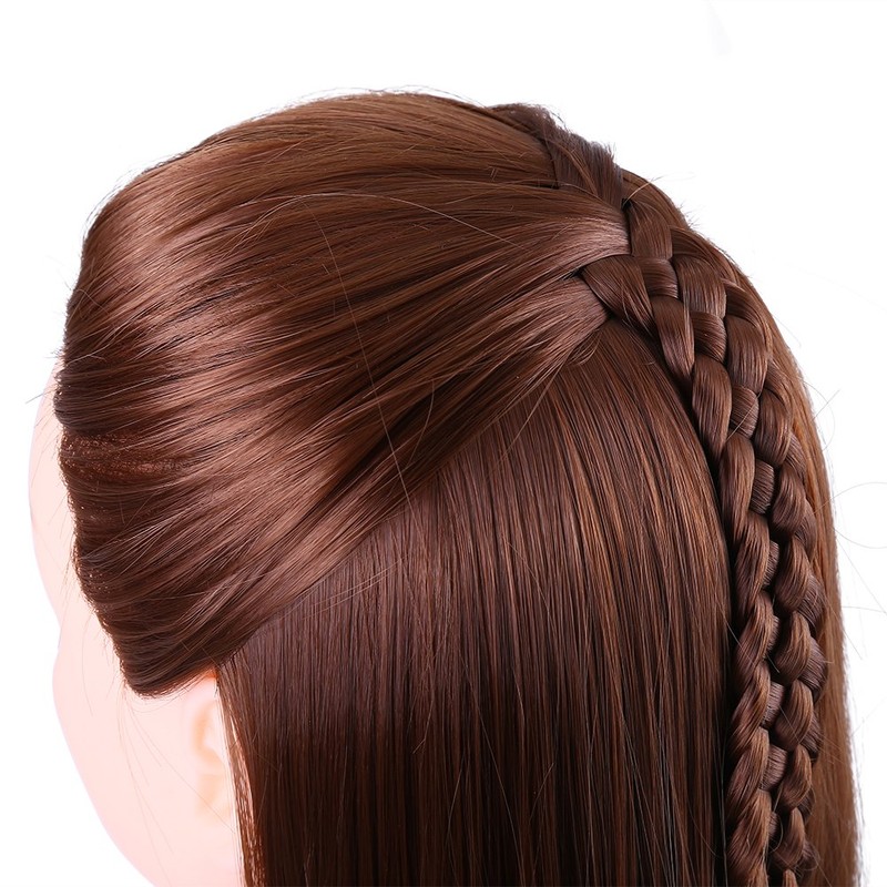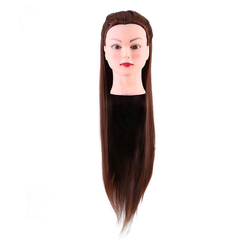 Hairdressing Training Head Synthetic Hair Brown with Table Clamp Base
