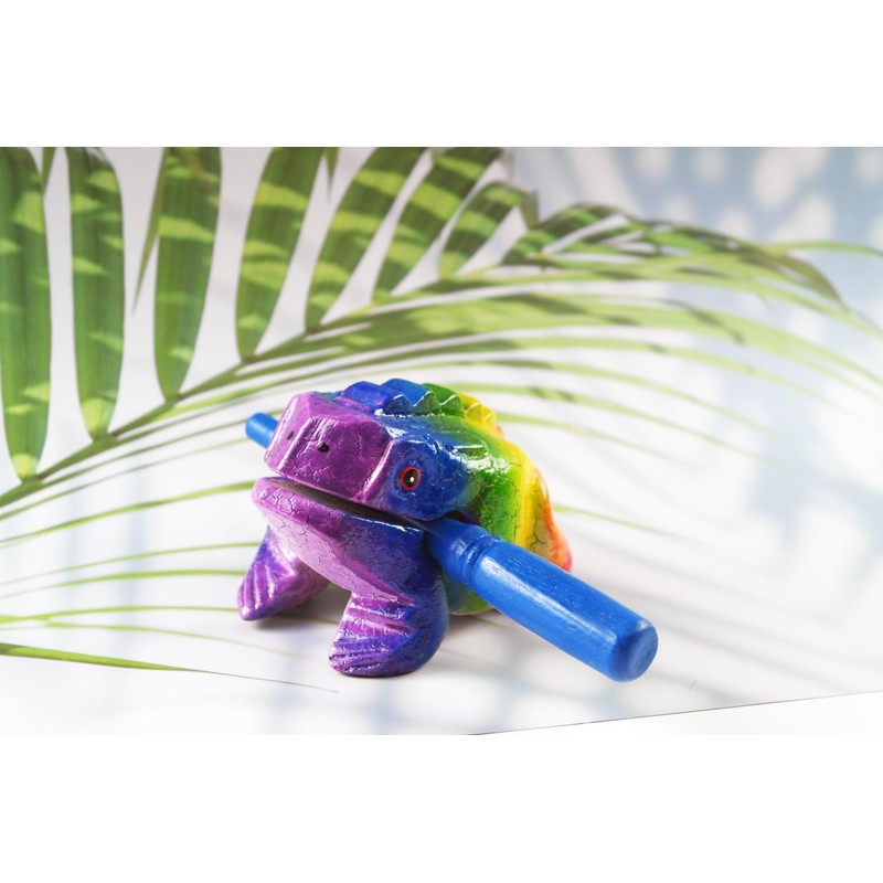 Frog guiro 4 inches wood block musical instrument Percussion Musical Instrument Perfect size Natural Wood Güiro Frog (Rainbow)