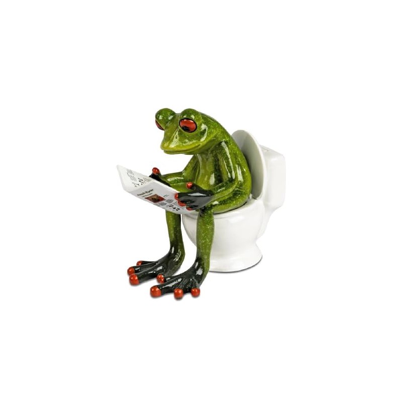 Frog on Toilet with Newspaper 11 cm Made of Artificial Stone, Hand Painted and Decorated with Details