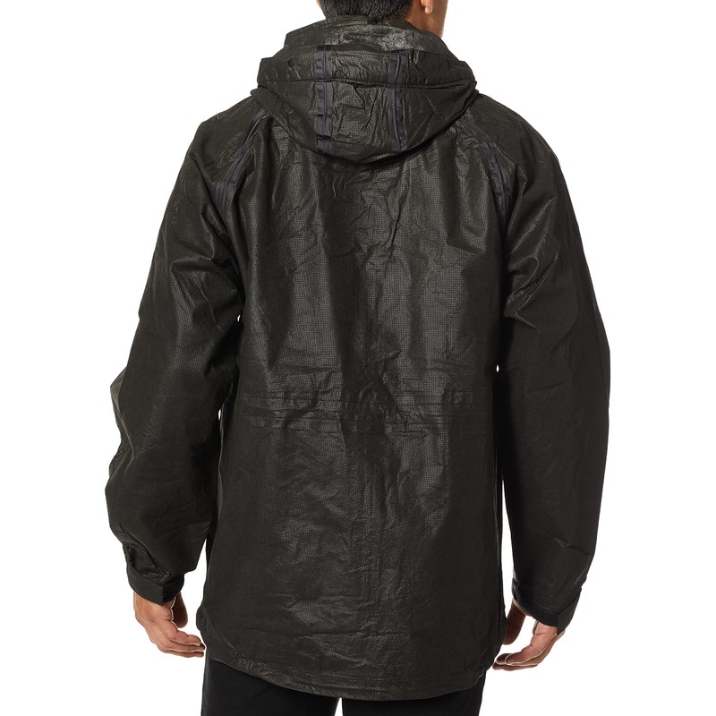 • Rain jacket with adjustable, tuck-away hood with E-Z Push cord locks