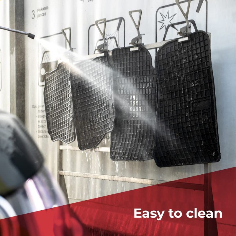 - The set includes practical car rubber mats and a synthetic cleaner sponge