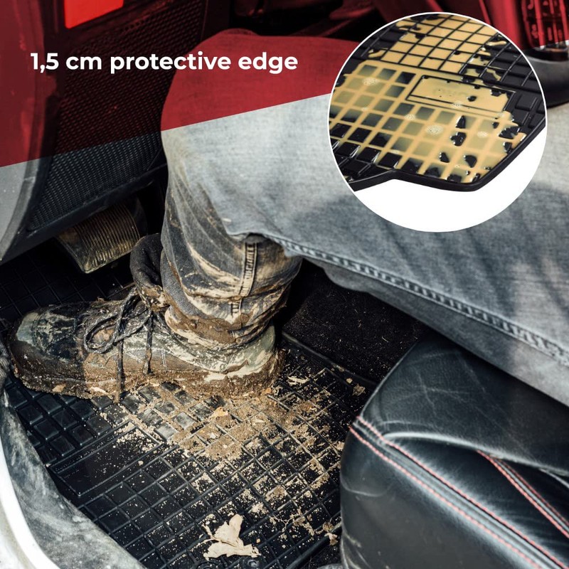 FROGUM EL Toro Rubber Mats All Year Round Set of Car Floor Mats for Seat Ibiza IV 2008-2017, for Skoda Fabia III 2014-2021 | Durable Rubber Material | 1.5 cm Protective Edge