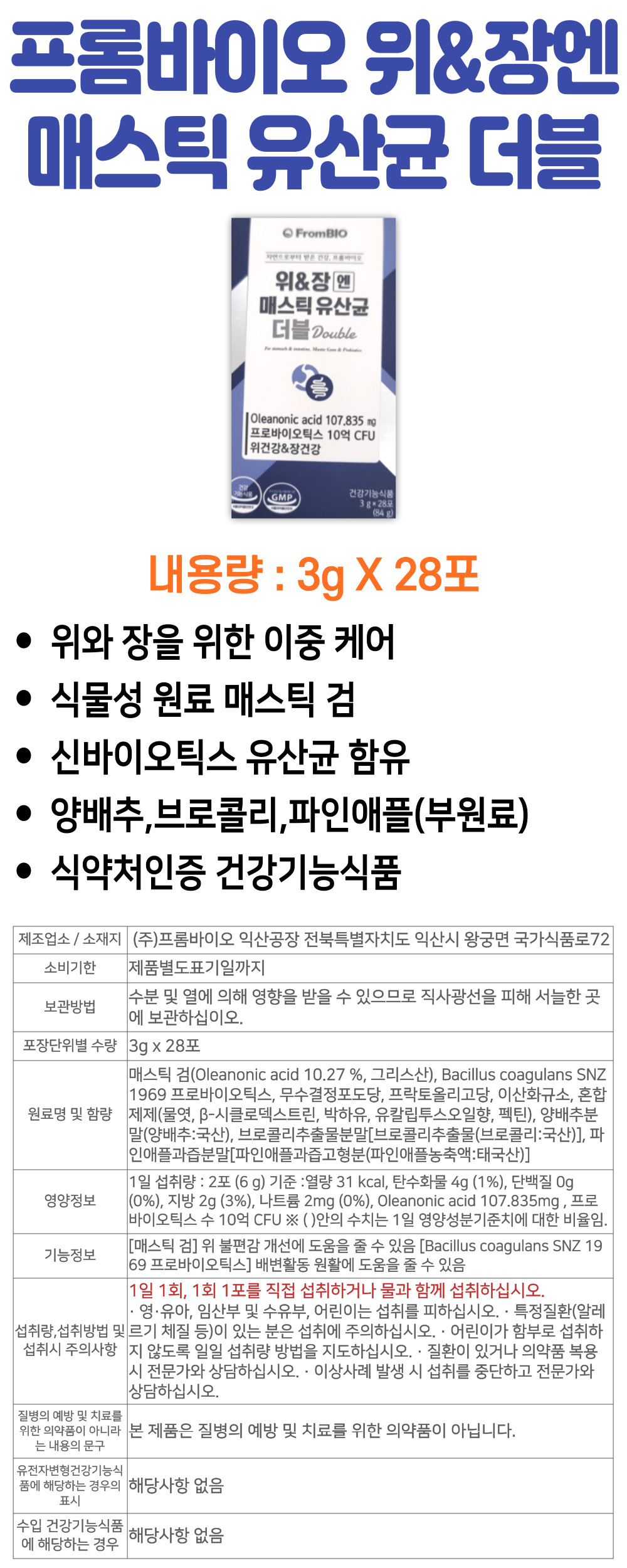 Frombio Wee Jang Mastic Lactic Acid Bacteria Double Probiotics Broccoli Pineapple Cabbage Fructooligosaccharide Premium / 프롬바이오 위 장 매스틱 유산균 더블 프로바이오틱스 브로콜리 파인애플 양배추 프락토올리고당 프리미엄
