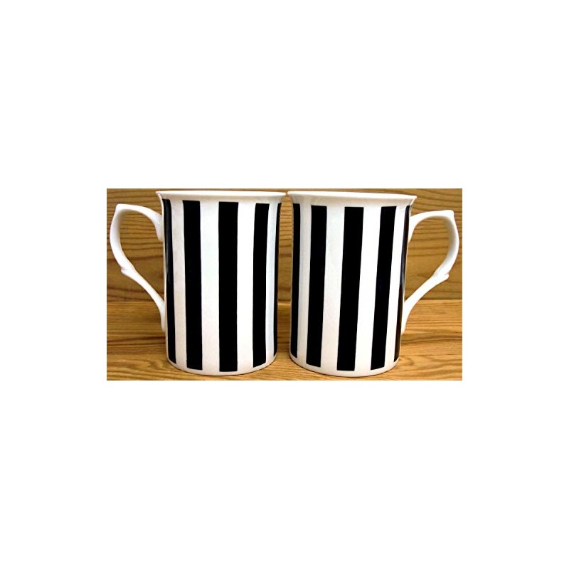 - Gorgeous Just Black Vertical Striped Fine Bone China Mugs.