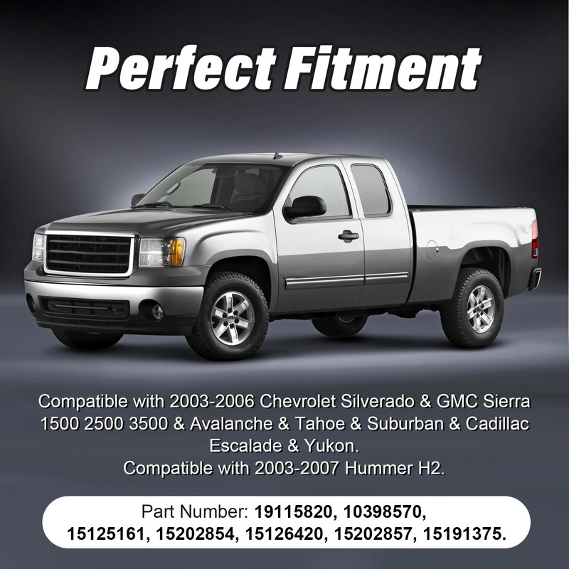 - Perfect Fitment: The front passenger window switch with dark gray bezel is compatible with 2003-2006 Chevrolet Silverado & GMC Sierra 1500 2500 3500 & Avalanche & Tahoe & Suburban & Cadillac Escalade & Yukon. Compatible with 2003-2007 Hummer H2. Please verify compatibility by checking your vehicle model and part number before purchasing.