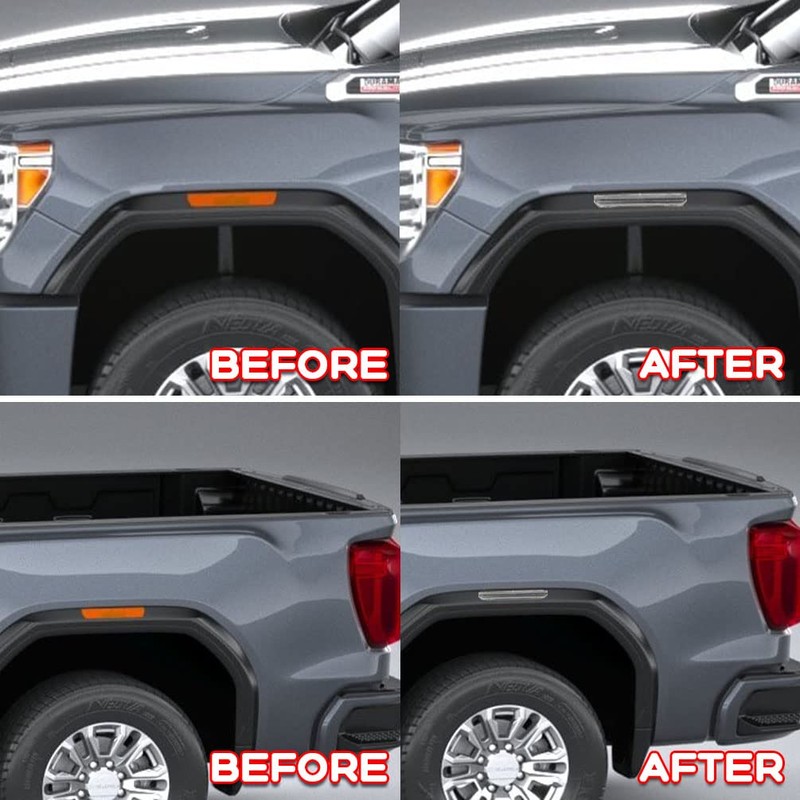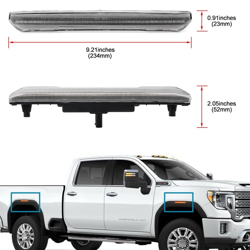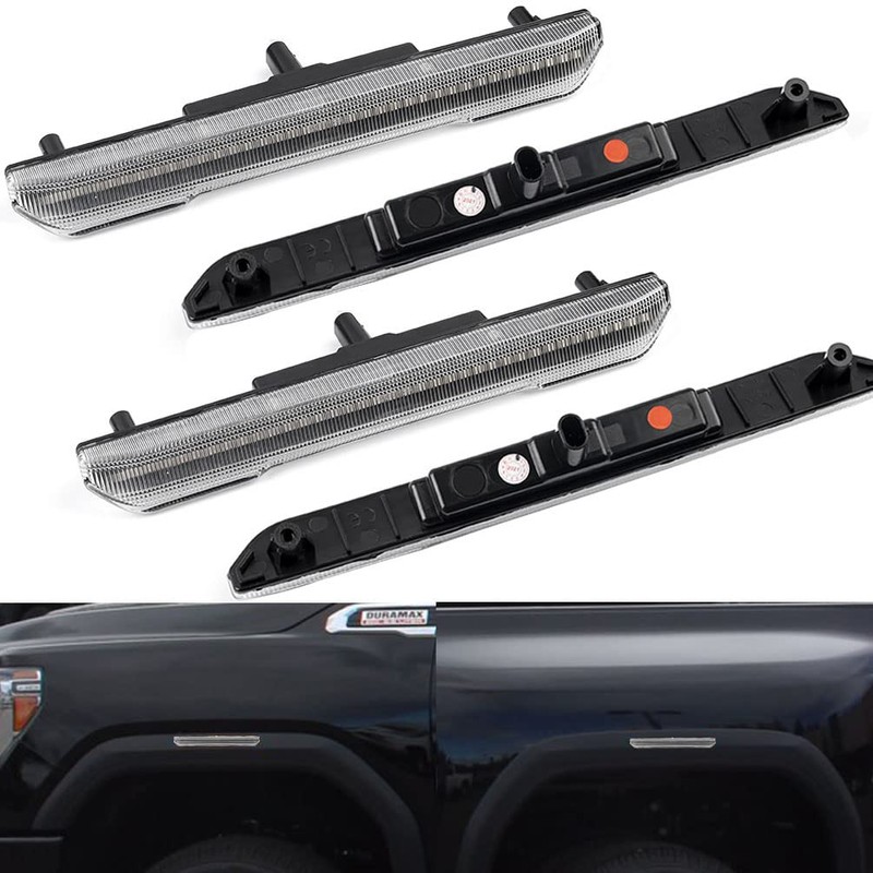 • Function: Compatible with 2020-2025 GMC Sierra 2500HD AT4 SLE SLT Base Denali & 2020-2025 GMC Sierra 3500HD AT4 SLE SLT Base Denali. Upgrade your Sierra 3500HD/2500HD front and rear side marker lamps with a new fashion style clear lens outlook and brighter LED lighting