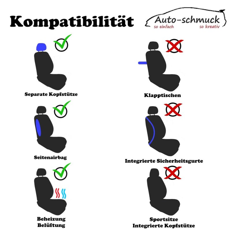 - Attention: only fits seats with removable headrests, suitable for heated and ventilated seats, suitable for side airbags, TÜV tested and certified