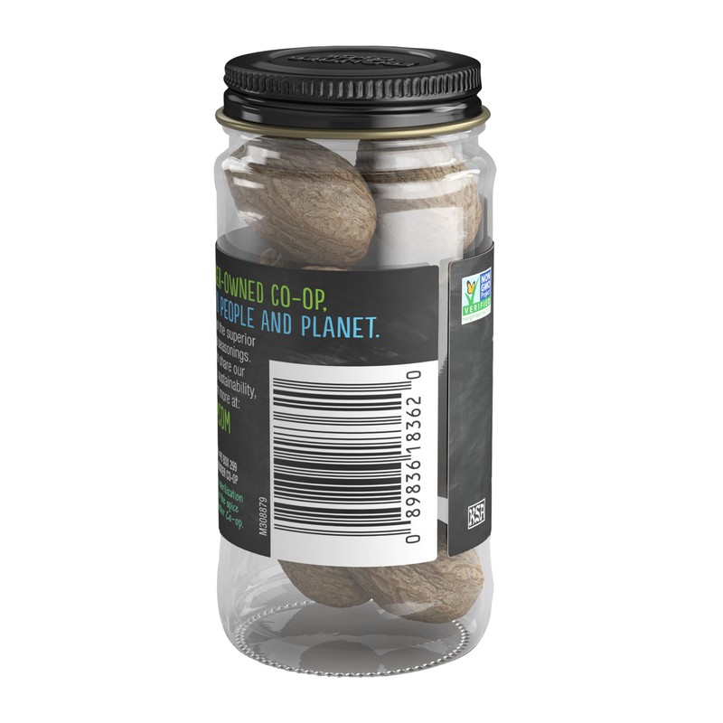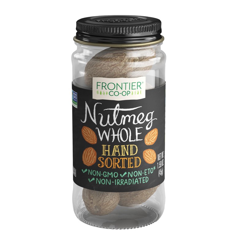 - WHOLE NUTMEG - Frontier Co-op Whole Nutmeg, provides a more potent and fresh flavor compared to ground nutmeg. This culinary gem allows you to grate the exact amount needed using a microplane or spice grinder, with no requirement to remove the outer shell.