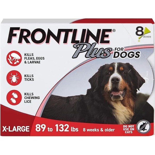 Frontline Plus Flea and Tick Treatment for X-Large Dogs Up to 89 to 132 lbs. 8 Treatments - Brand New Condition