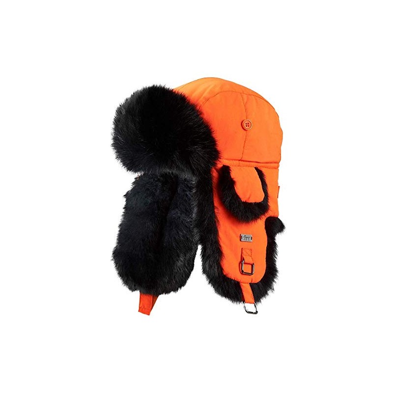 frr Blaze Orange B-52 Aviator Hat with Black Rabbit Fur (Large/XLarge, Orange)