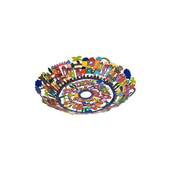 Fruit Bowl Serving Salad Centerpiece - Yair Emanuel SMALL BOWL LASER CUT HAND PAINTING JERUSALEM (Bundle)