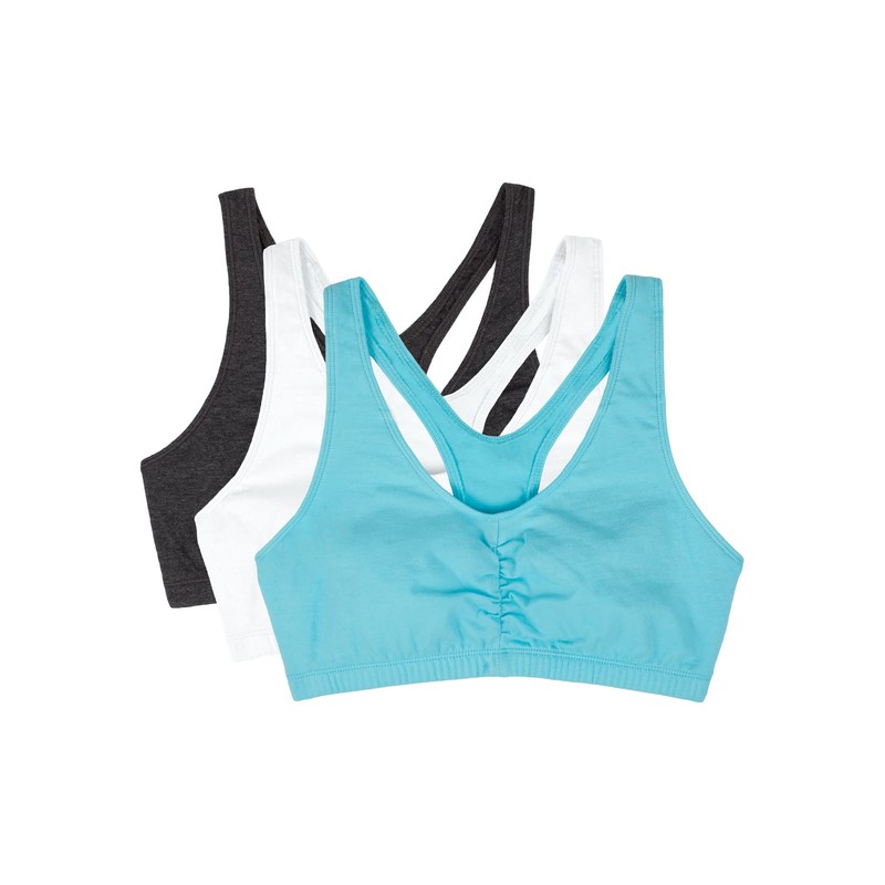 Fruit of the Loom Women's Adjustable Shirred Front Racerback Sports Bra, Turquoise/White/Charcoal, 36