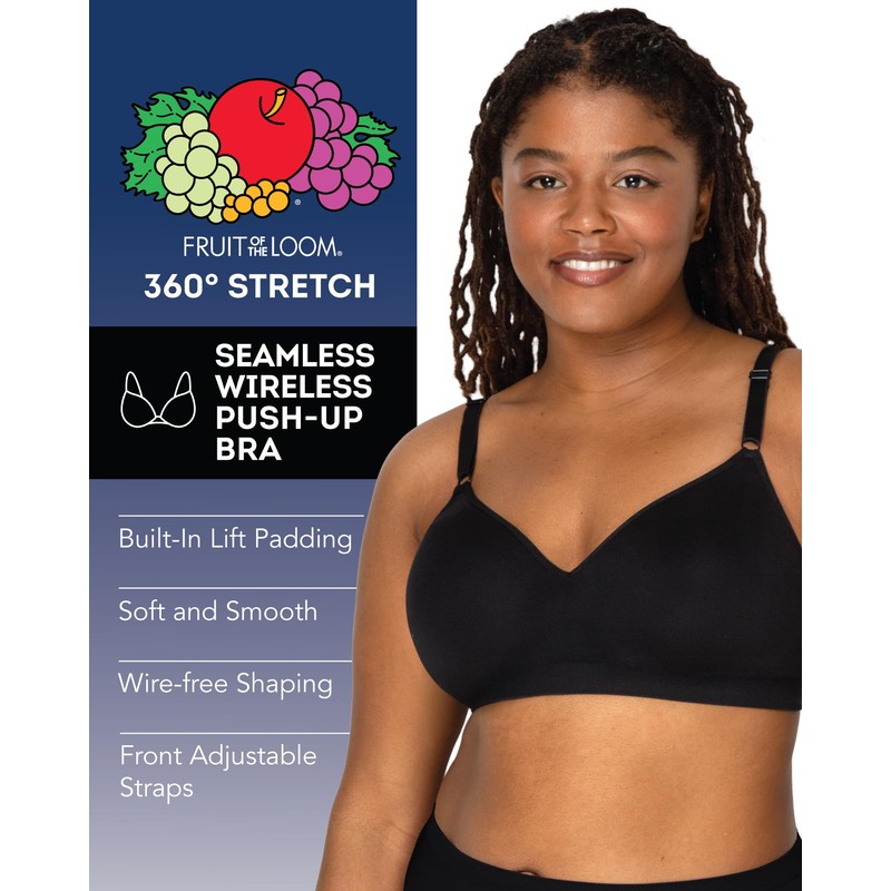 Fruit of the Loom Women's Seamless Wire Free Push-up Bra, Deja Blue/Grey Heather