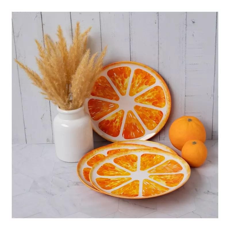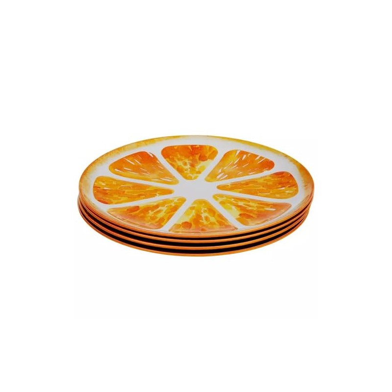 Fruit Slices Spring Summer Melamine Plates Small - Dinnerware Set - Party Serving Dish 4 pc (8 in, orange)