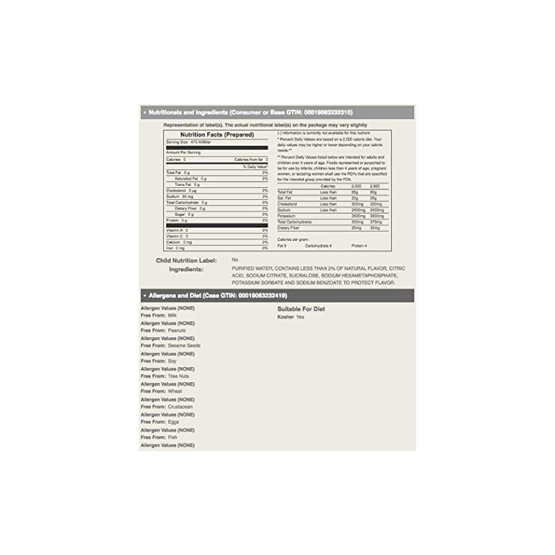 - Zero calories, zero grams of sugar, and zero grams of carbohydrates