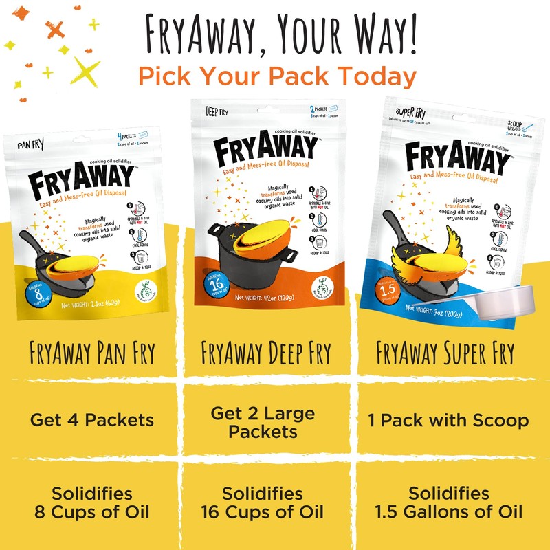 - Convenient and Hassle-Free - FryAway Cooking Oil Solidifier takes the mess out of oil disposal. Sprinkle and stir into hot oil until fully dissolved, let it cool down and solidify, then toss it in the trash. No more time-consuming clean-up.