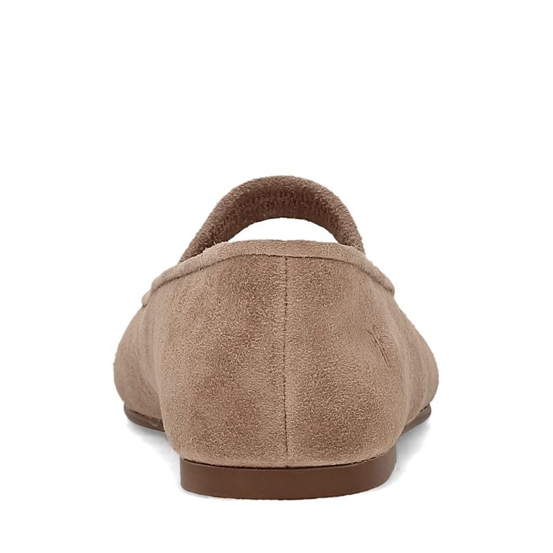 Frye Emma Elastic Mary Jane Flats for Women – Leather Slip-On Ballet Flats with Strap and Cushioned Footbed, Dark Taupe - 9.5M