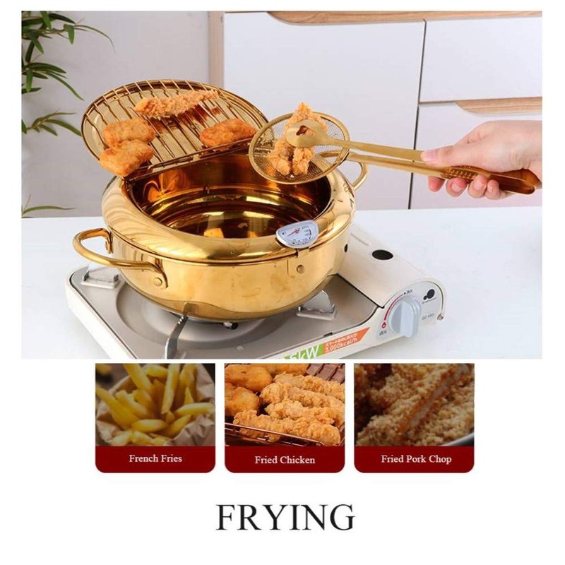 - Widely applicable: Double-layer compound bottom design, uniform heating and strong compatibility. The fryer can be used with gas stoves or induction cookers.
