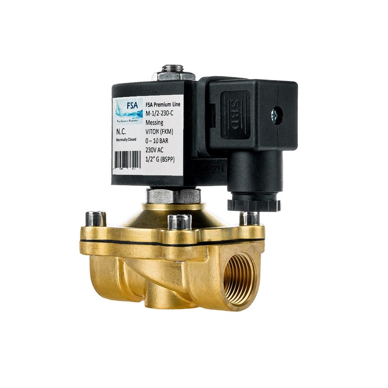 FSA Viton Solenoid Valve Brass 1/2 Inch 230 V AC 0-10 Bar Closed