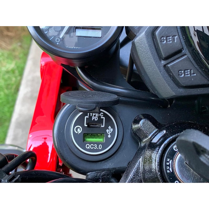 - ▲ Application- Input voltage: 12-24V; Output: 5V, fast charge; Connector type: USB & Type-C; Continuous lighting after engine starts.