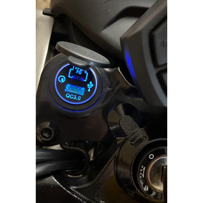 Connector type: USB & Type-C; Continuous lighting after engine starts.