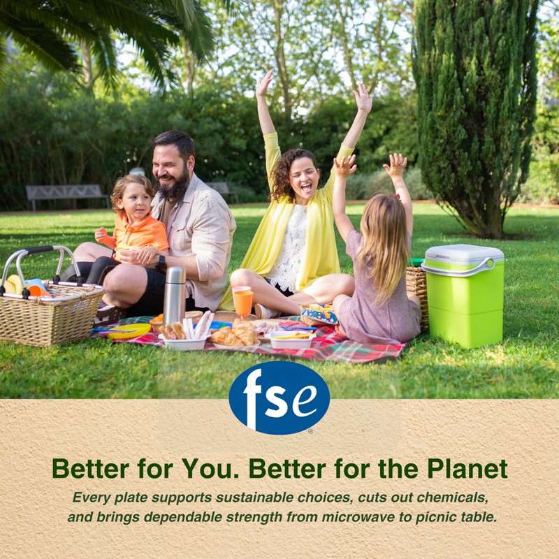 FSE 100% Compostable Round Paper Plates, 7 Inch, Heavy Duty Disposable Plates, Eco-Friendly Unbleached Bagasse, Microwave Safe, (Pack of 125)
