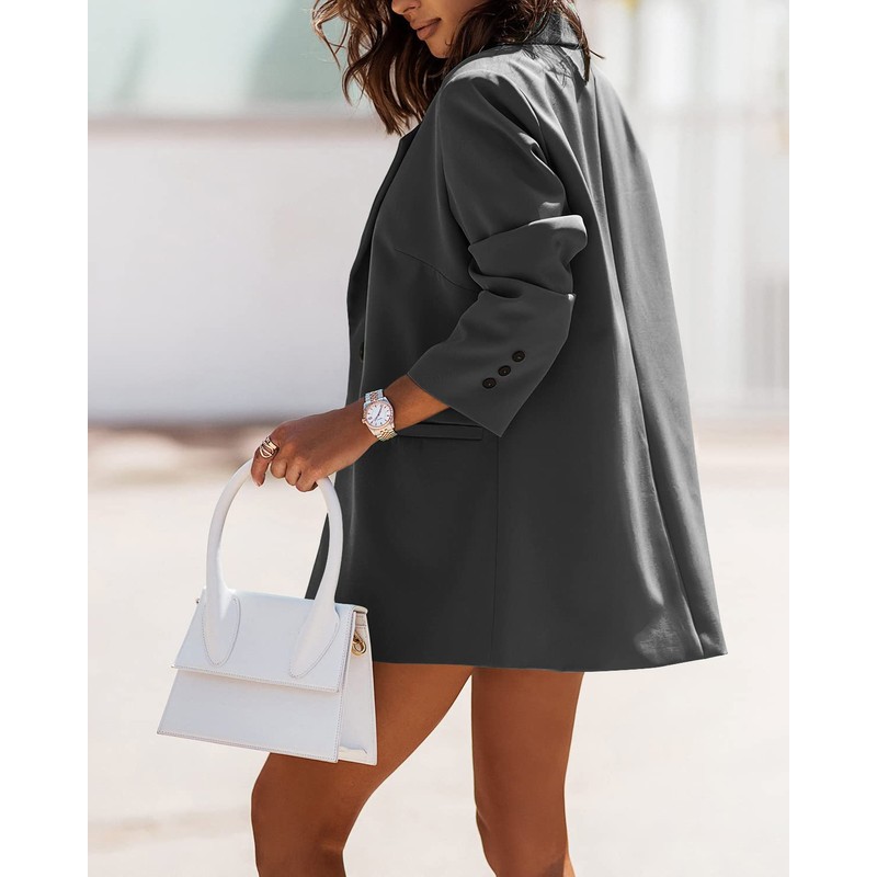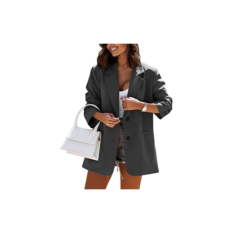FSHAOES Women Casual Oversized Blazers Lapel Button Down Solid Work Office Blazer Jacket Dark Gray