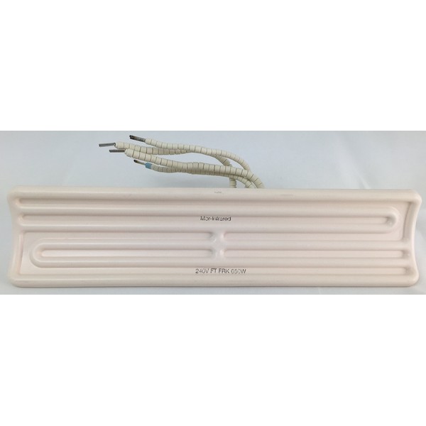 Though ceramic, the elements are fairly rugged and are more durable than quartz, and cleaning is easy, with their splash-proof, non-corrosive, glazed finish, which also makes them the ideal choice for use in food handling, medical facilities, or other antiseptic applications. The large variety of sizes, shapes, and watt densities allows ceramic elements to be highly useful in zoning arrangements such as plastic thermoforming where complex heating patterns are needed.