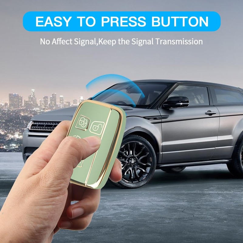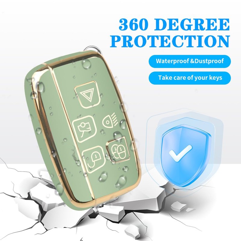 FT FUNTOR Key Fob Cover with Keychain, Car Key Case Shell Protector 5 Buttons Compatible with Range Rover Evoque Sport Velar,Discovery LR4 a9,Jaguar Velar Vogue (Green)