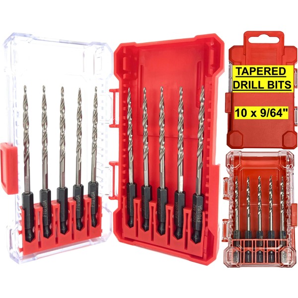 FTG USA 10 Pc 9/64" (#6) Tapered Drill Bits, Replacement for Countersink Drill Bit Set with Storage Container