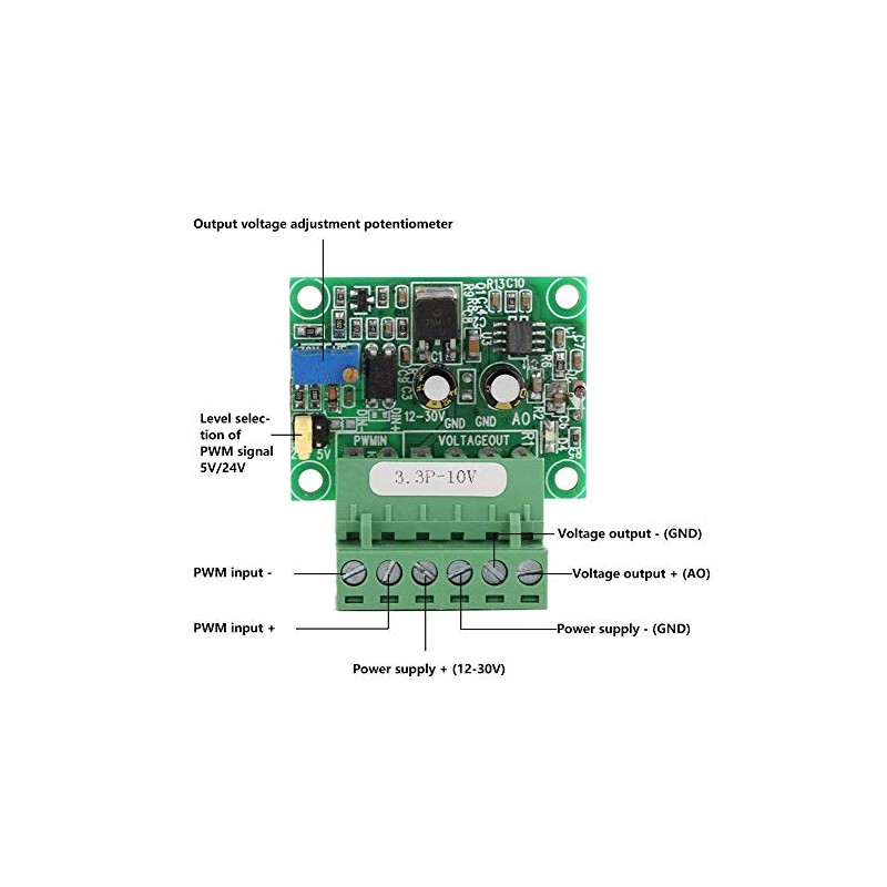 Function: input 0-100% PWM signal with 3.3V level, output 0-10V voltage
