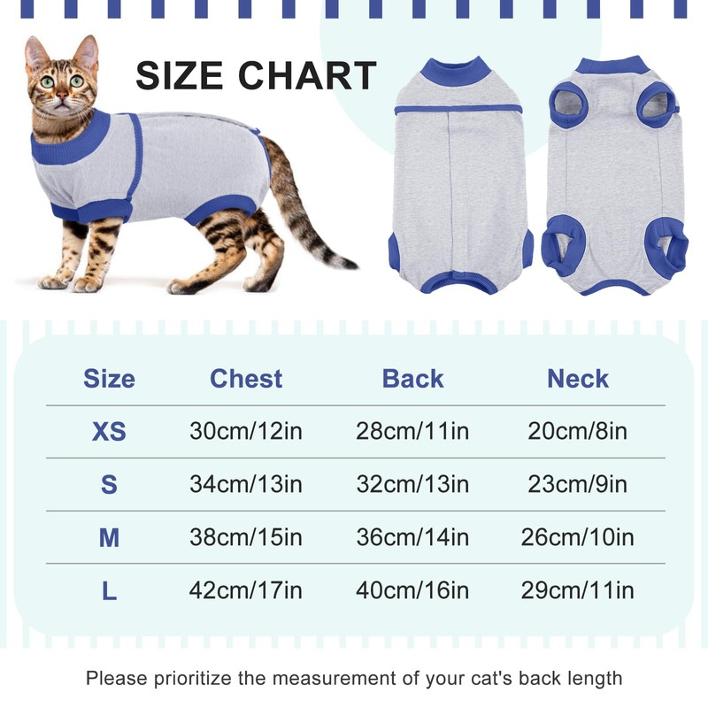 - 【Purchase Tips】:High-quality, non-disposable materials, FUAMEY cat surgery recovery suit can be washed and reused multiple times, providing an environmentally friendly and cost-effective solution. Hand washable and machine washable, we recommend you buy two as replacements.Please prioritize the measurement of your cat's back length before placing an order.