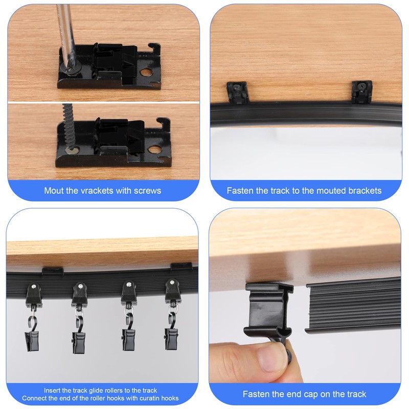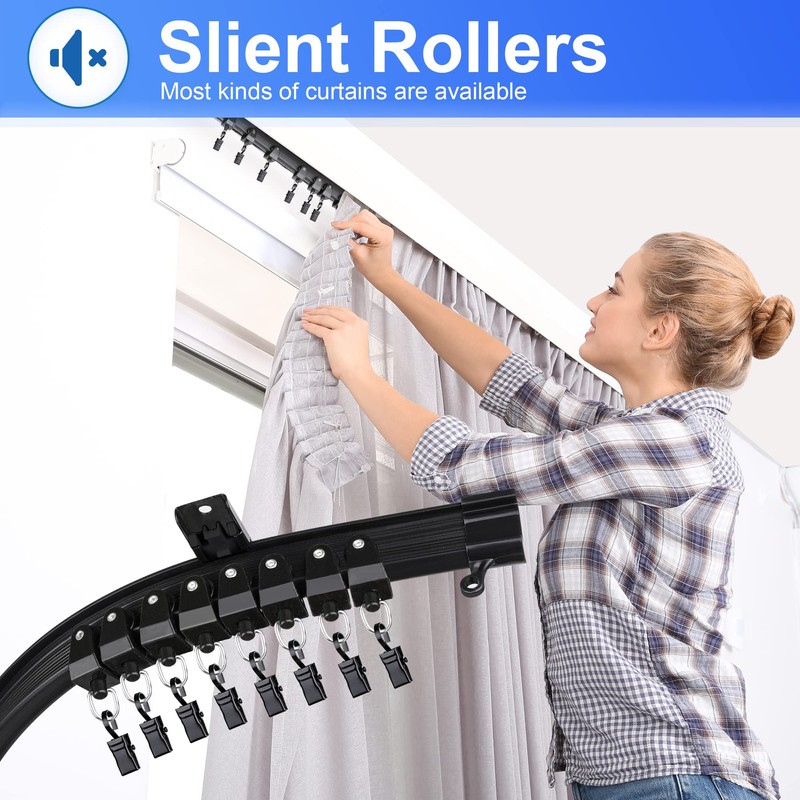 - Easy to install: it is easy to install by yourself, please carefully bend it into shape at one time, there is practical design to reduce the noise when sliding the carriers, you can bend it where you want and stretch it the entire length of the room.