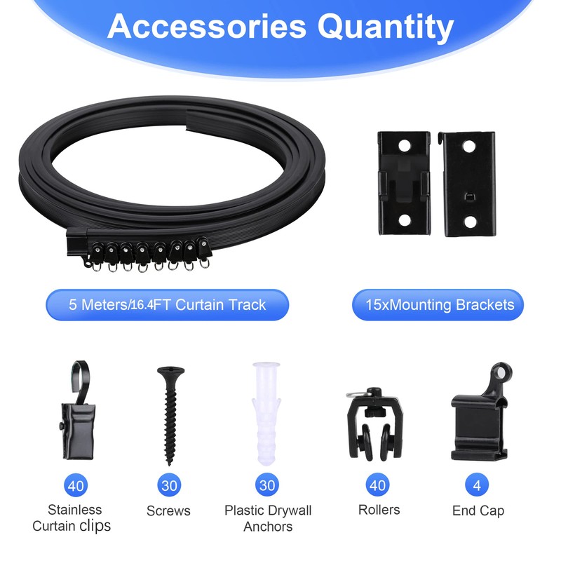 Curtain Track: 16.4ft Rollers: 40pcs