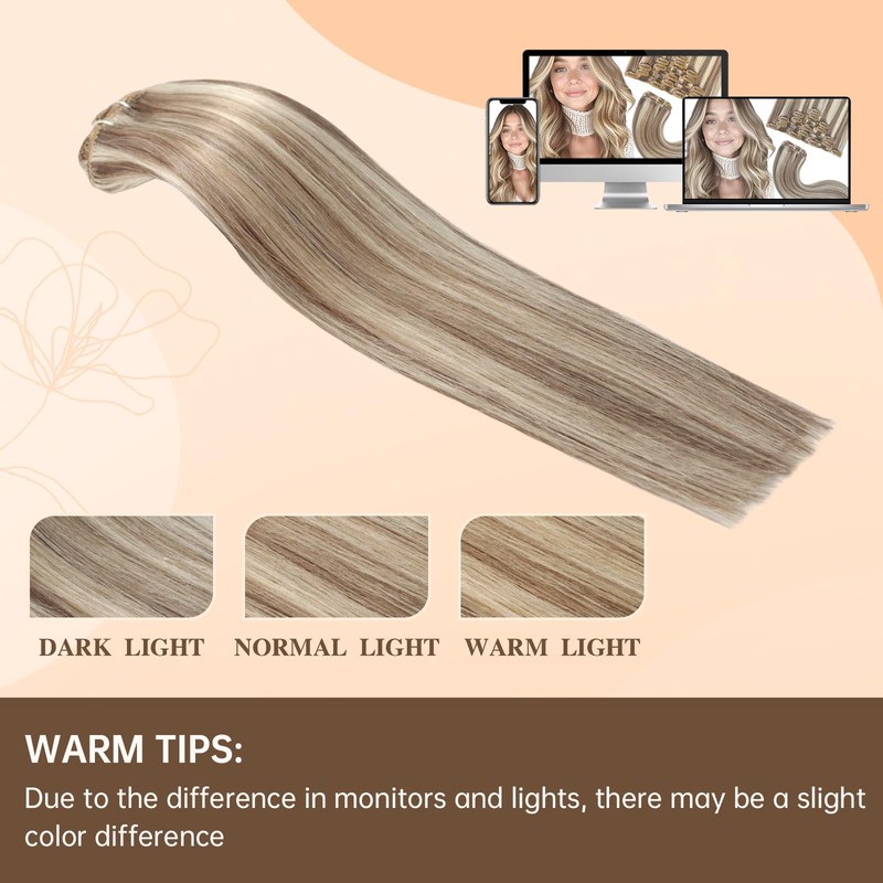 - [FUBILI Hair Extensions Color Match]Our clip in real human hair extensions contain a variety of balayage,solid,and highlight effects, giving you multiple options to create different hairstyles.Due to light, monitor, etc, the color of the hair extensions may be slightly different from the color shown in the pictures. It's a sheer pleasure for assisting you if you have any questions about our products, orders and other problems.