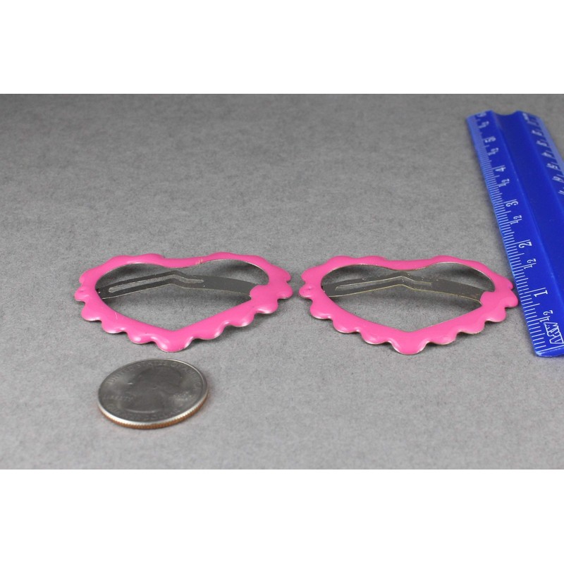Fuchsia Pink heart set pack 2 painted metal hair clip click snap barrettes 2 1/8 inches wide