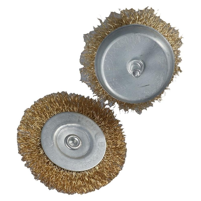 - What You Get:9 piece brass coated wire brush wheel and cup brush set for rust, etch and paint removal.1/4"""" shank fits all bits. Hardened wire reduces breakage and extends life